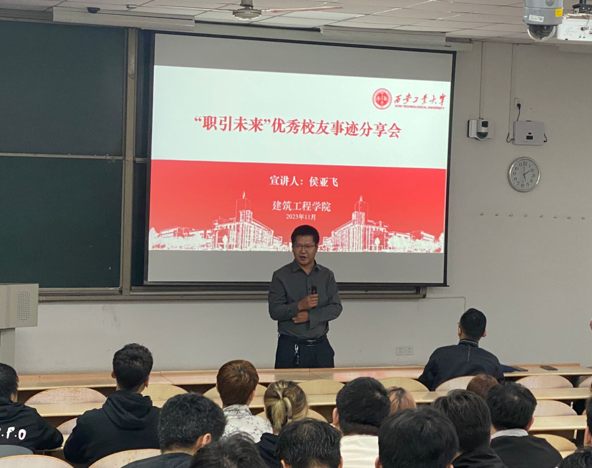 11月1日,伟德国际victor1946在教1-103举办“职引未来”优秀校友事迹分享会。学院2006届土木工程专业校友、陕西建工机械施工集团有限公司国际工程公司书记侯亚飞师兄作为主讲嘉宾,与150余名在校学子们分享他的求学、工作经验和人生感悟。