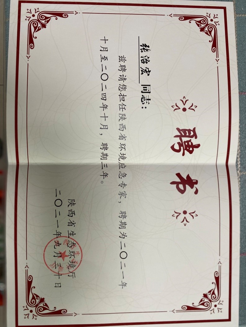 作为陕西省第一批环境应急专家,张老师曾经参与《陕西省突发环境事件应急预案编制指南》、《西安市突发环境事件应急预案》、《十四运会和残特奥会浐灞河突发水环境污染事件应急预案》、《西安市2021年突发环境事件应急演练方案》以及陕西省内相关企业的突发环境事件应急工作,为保护陕西省生态环境安全及十四运和残特奥会的顺利进行贡献了西工智慧和西工力量。