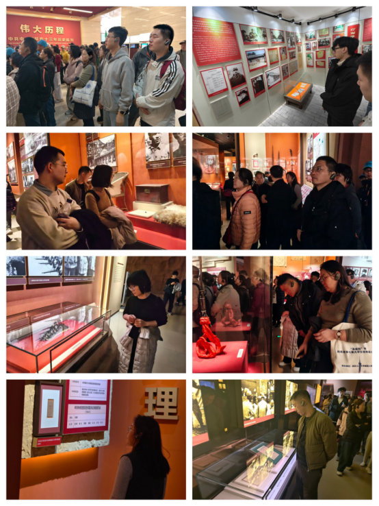 延安革命纪念馆内,丰富的历史资料、生动的场景复原、珍贵的革命文物,系统展现了中国共产党在延安领导中国革命的光辉历程。师生们沿着“红军长征胜利到陕北”“抗日战争中流砥柱”“解放战争战略转折”的历史脉络,逐展厅认真参观。在“红军长征抵达陕北”展区,复原的窑洞场景里,煤油灯旁堆叠着战士们的背包,讲解员轻声讲述部队扎根陕北、团结群众的故事;走到“延安大生产运动”场景前,军民携手开荒种地的雕塑鲜活生动,大家不时驻足凝视,低声交流感悟,有的还拿出笔记本记录历史细节。从长征的艰辛跋涉,到抗战的浴血坚守,再到决战的决胜时刻,一幅幅波澜壮阔的历史画卷,让师生们深刻体会到革命胜利的来之不易,也对“自力更生、艰苦奋斗、全心全意为人民服务”的延安精神有了更具体的认知。