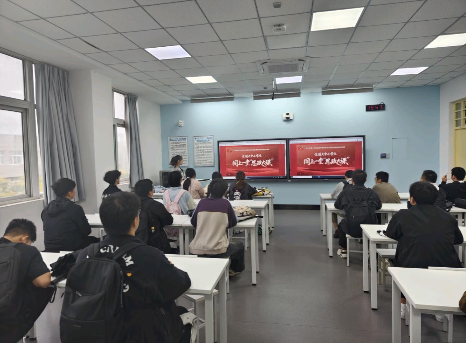 课程以“弘扬伟大抗战精神做光荣自豪中国人”为主题,通过丰富的史料、生动的讲述,展现了中国军民在抗战中不屈不挠、浴血奋战的英雄气概。“八百壮士”坚守四行仓库、抗战老兵回忆战友前赴后继牺牲等内容,让同学们深刻感受到抗战胜利的艰辛与不易,伟大的抗战精神深深震撼着在场每一位学生。土木五班团支书表示,我忽然明白,这些历史片段不只是故事,更是我们班级思想建设的“活素材”——以后组织主题团日活动,或许可以带大家梳理“抗战中的土木力量”,让大家更直观地感受专业与家国的联结。