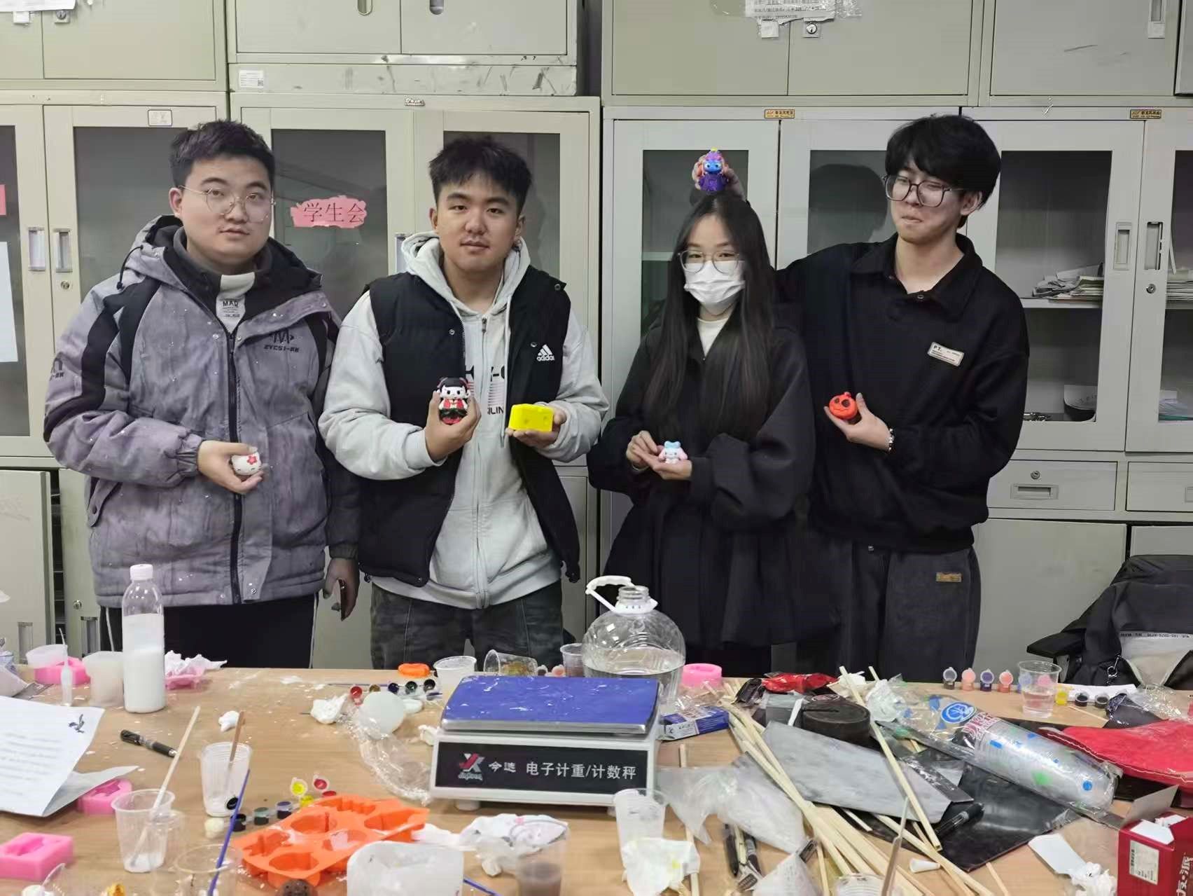 活动现场,各族学子热情高涨。大家围坐在一起,从调制石膏浆开始,小心翼翼地控制水灰比,确保浆料细腻无气泡。在模具灌注与手工塑形环节,石膏浆的凝固时间有限,这要求同学们必须分工明确、配合默契。汉族同学发挥精细操作的优势,协助少数民族同学把控搅拌节奏;少数民族同学则充分发挥想象力,在石膏表面刻画纹样。大家互帮互助,有的负责修整边缘,有的负责打磨表面,现场气氛热烈而温馨。